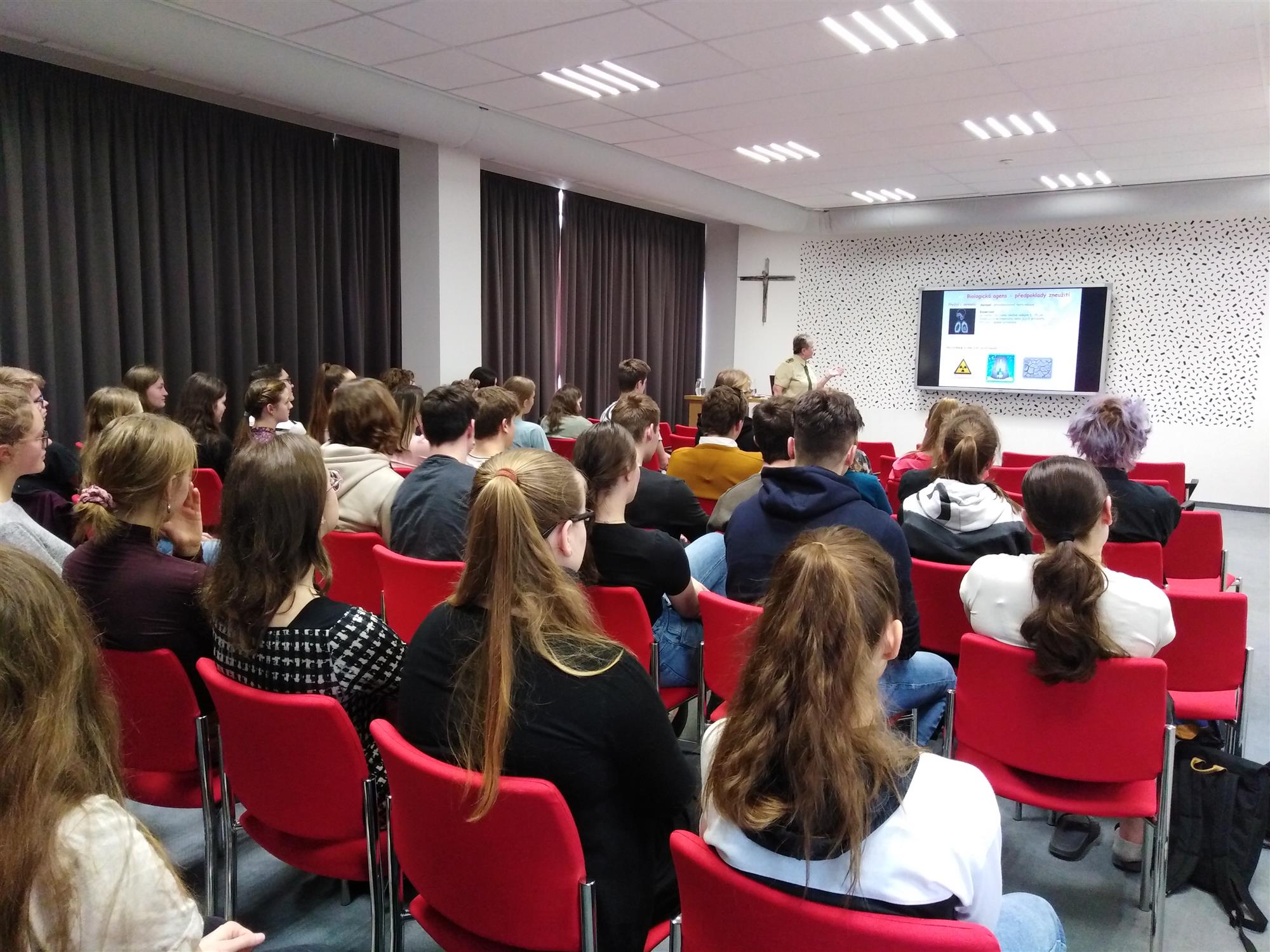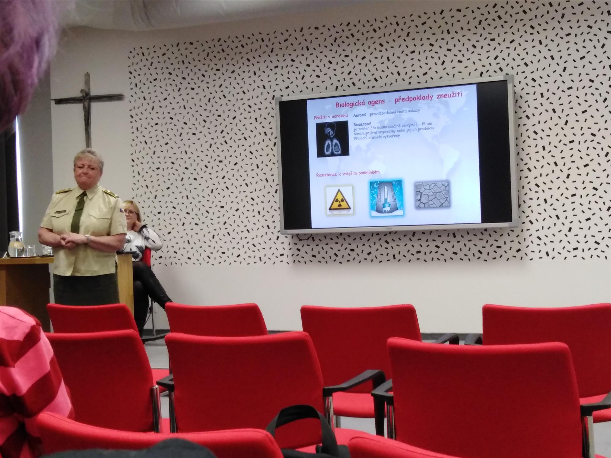 V pátek 18. 3. navštívil školu neobvyklý host. Jednalo se o paní brigádní generálku Prof. RNDr. Zuzanu Kročovou, Ph.D, která se zabývá biologickými zbraněmi a jejich účinky na člověka a jeho okolí. Přednáška byla zaměřena na zbraně hromadného ničení. Rozebírali jsme jejich různé druhy: chemické, biologické, i fyzikální.
