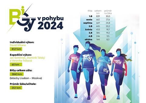 2. ročník překonal ten premiérový. Osm tříd nachodilo včetně kantorů úctyhodných 3843 kilometrů, což činí průměr na žáka 20,1 km. Jen pro představu, letecky by se Bigy dostalo z Lisabonu až téměř do Moskvy. V soutěži o nejlepší třídu zvítězila 1.B, která nashromáždila neuvěřitelných 839 km (30,0 km na žáka) a získala kromě věcných cen i zajímavou finanční odměnu, kterou zužitkuje během školního výletu.