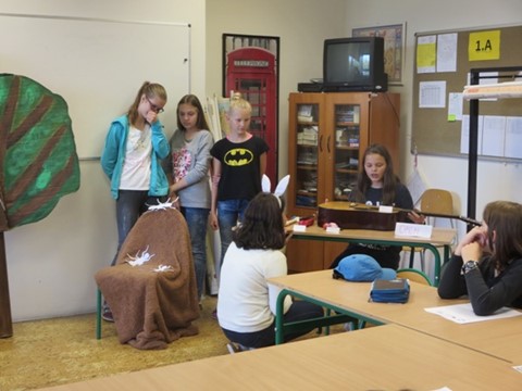 Žáci pátého ročníku ZŠ a MŠ Sněžné se ve středu 27.9. 2017 zúčastnili divadelního představení  „Rabbit‘s Quitar“ na Biskupském gymnáziu ve Žďáru nad Sázavou. Studenti sekundy s paní profesorkou Evou Troubilovou sehráli pro tyto žáky humornou pohádku v anglickém jazyce. Poté si pro ně paní profesorka Jitka Stráská připravila různé zajímavé aktivity spojené s tématem pohádky. Žáci pracovali s pracovním listem a hlavně komunikovali anglicky.