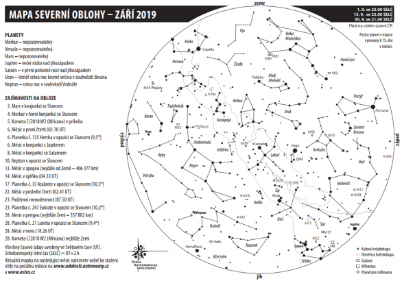 Hvězdná obloha v září 2019