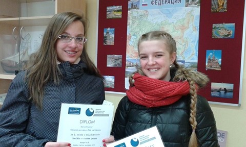 Naše dvě studentky se účastnily krajského kola poprvé a Eileen Niederlová z 1.B byla ve své kategorii dokonce nejmladší. Odnesla si diplom za čtvrté místo a Blanka Rousová z kvarty za krásné druhé místo